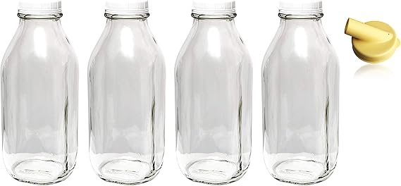 Amazon Com The Dairy Shoppe Heavy Glass Milk Bottles 33 8 Oz 1 Ltr Jugs With Extra Lids New Pour Spout 4 33 8 Oz Carafes Pitchers
