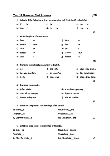 Year 12 French Vocabulary And Grammar Progress Tests With Answers Teaching Resources