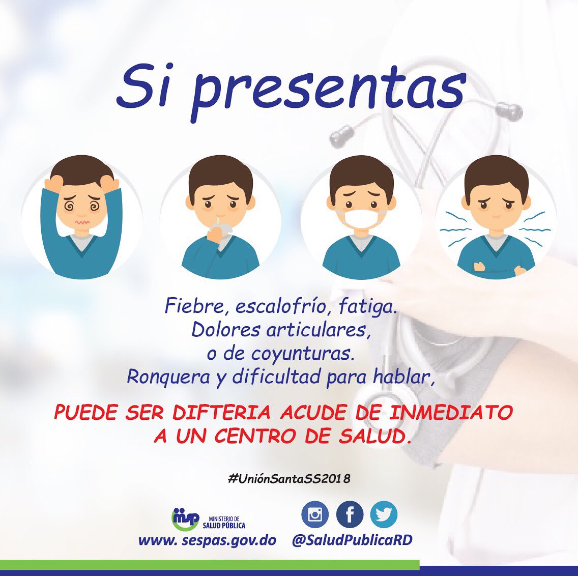 Salud Publica Rd على تويتر Precaucion Si Presentas Estos Sintomas Debes Acudir Inmediatamente Al Centro De Salud Mas Cercano Protegete De La Difteria Saludpublicard Semanasanta Unionsantass2018 Https T Co Rsois3fumf تويتر